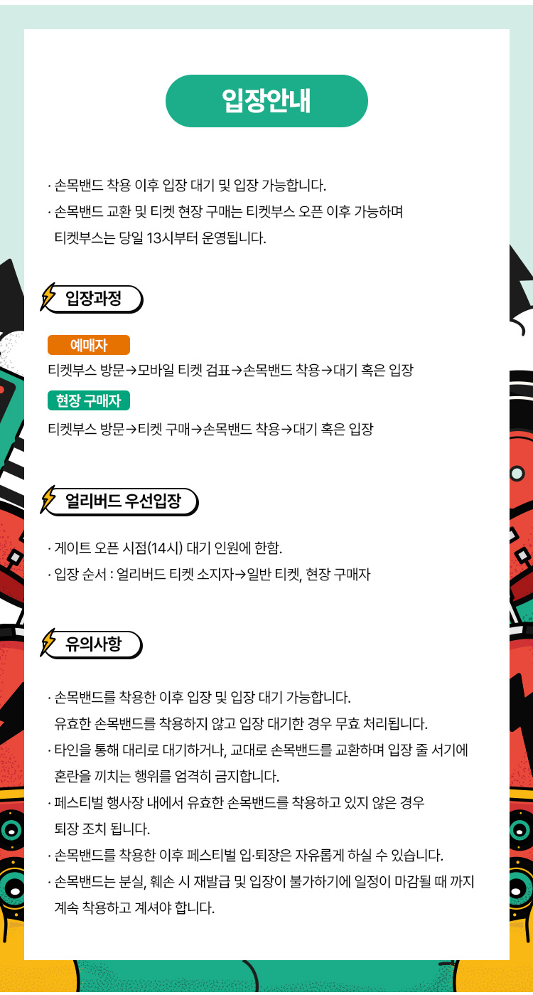 락페스티벌 관련 주차장, 입장안내, 티켓 등 주요사항은 빠르게 확인하실 수 있습니다.